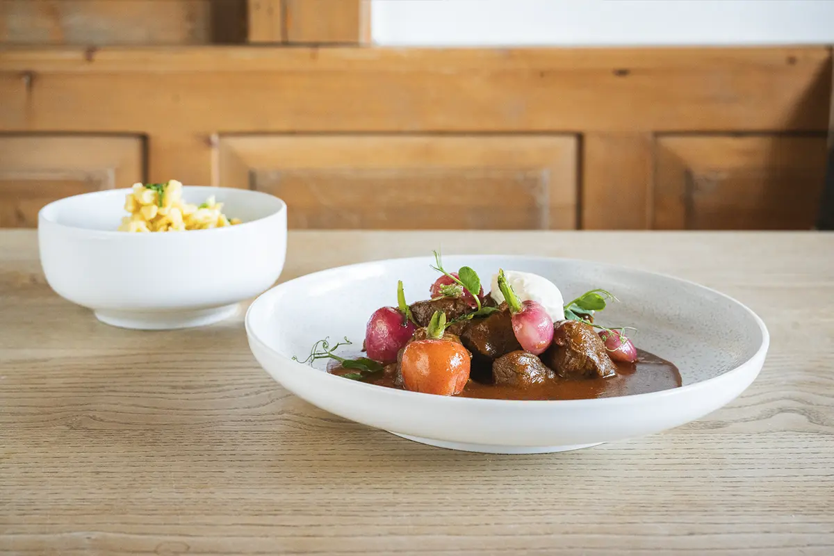 Setz‘ die hera, samma mehra! Beim Mittagessen im WEIHERSTÜBERL geht’s g’miatlich zua. Kleine Karte, großes Herz. Und garantiert für jeden Gaumen was dabei.